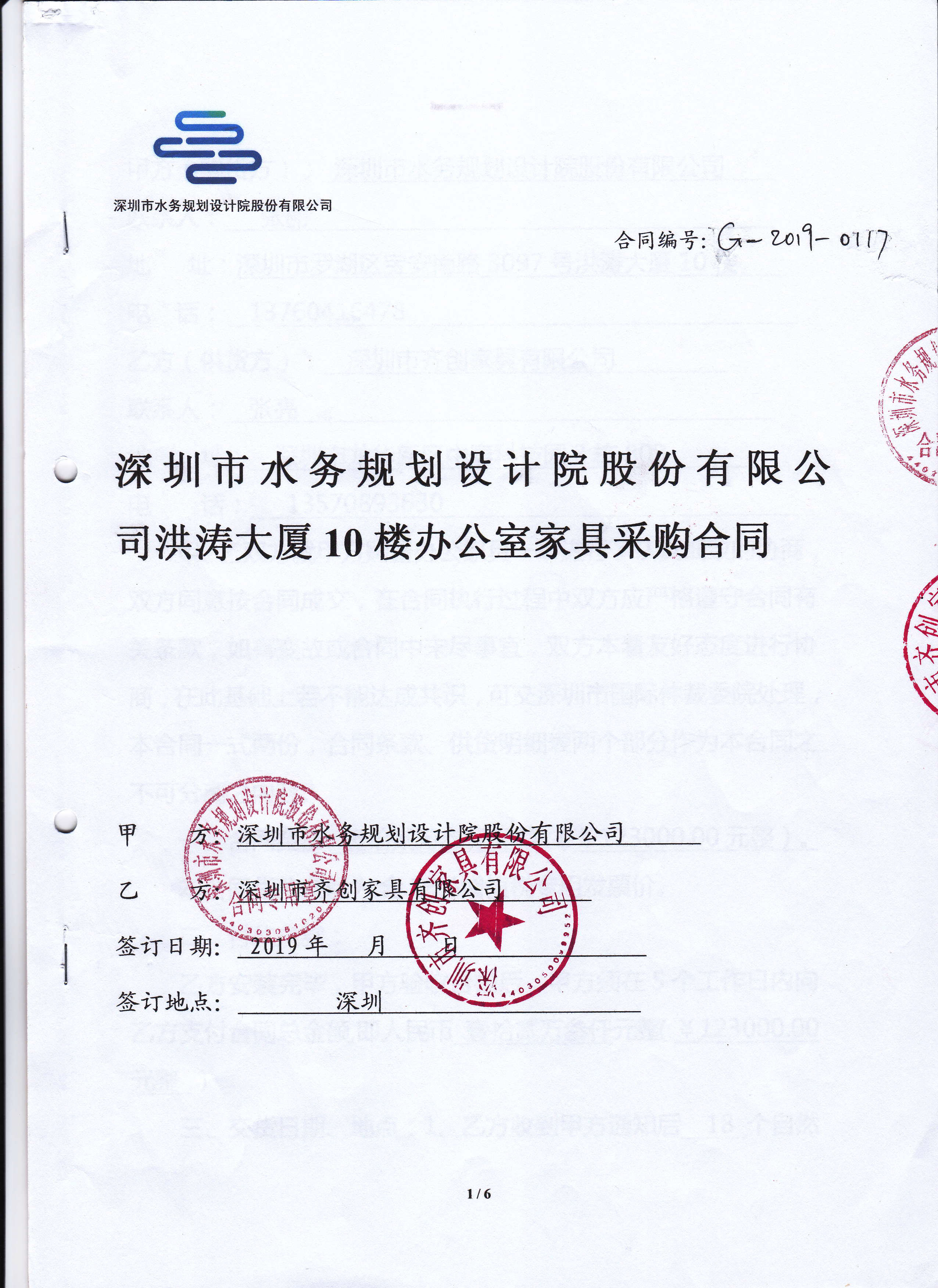 深圳市水務(wù)規(guī)劃設(shè)計(jì)院股份有限公司簽約合同